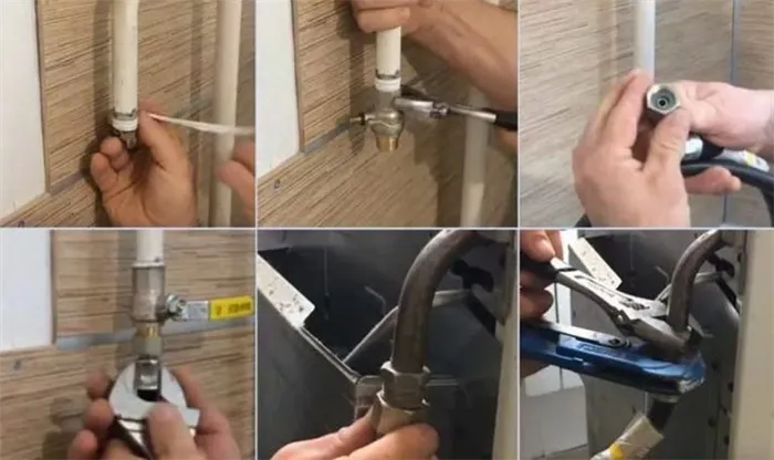 - Затягивать соединения нужно плотно, но без чрезмерного приложения усилий, чтобы не сорвать резьбу.